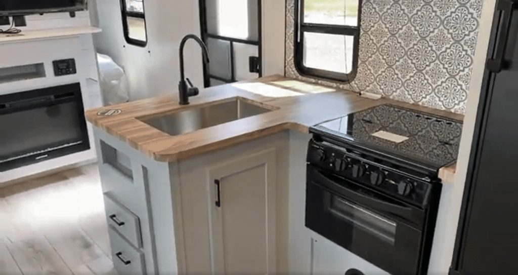 The North Trail impresses with its construction choices. These include Azdel walls, which contribute to the RV’s overall durability and lighter weight.
