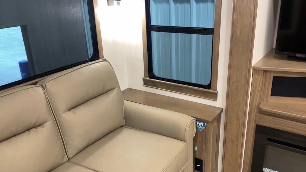 A few areas might raise concerns. The top bunk can’t be accessed when the sofa bed is in use, and the taillights could be positioned higher for better visibility while towing. The multi-purpose room also lacks a hard wall, which might affect privacy.