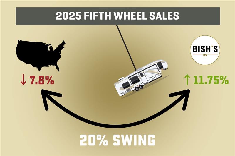 Bish’s 2025 New 5th Wheel Sales have outperformed National 5th Wheel Sales by nearly 20%.