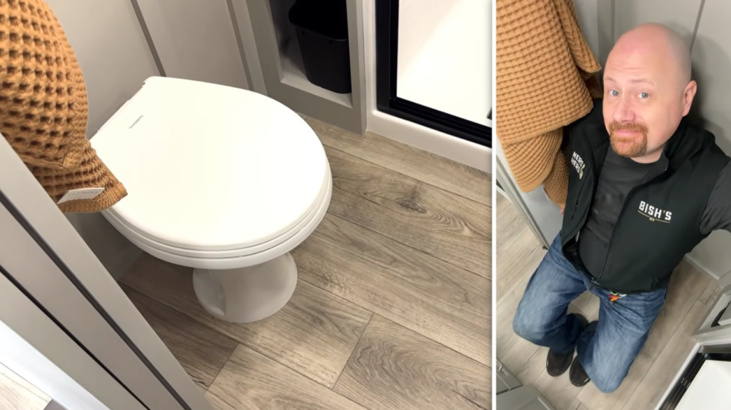 A bath-and-a-half layout is a big deal in a coach this size because it dramatically improves day-to-day living, especially with guests or kids.