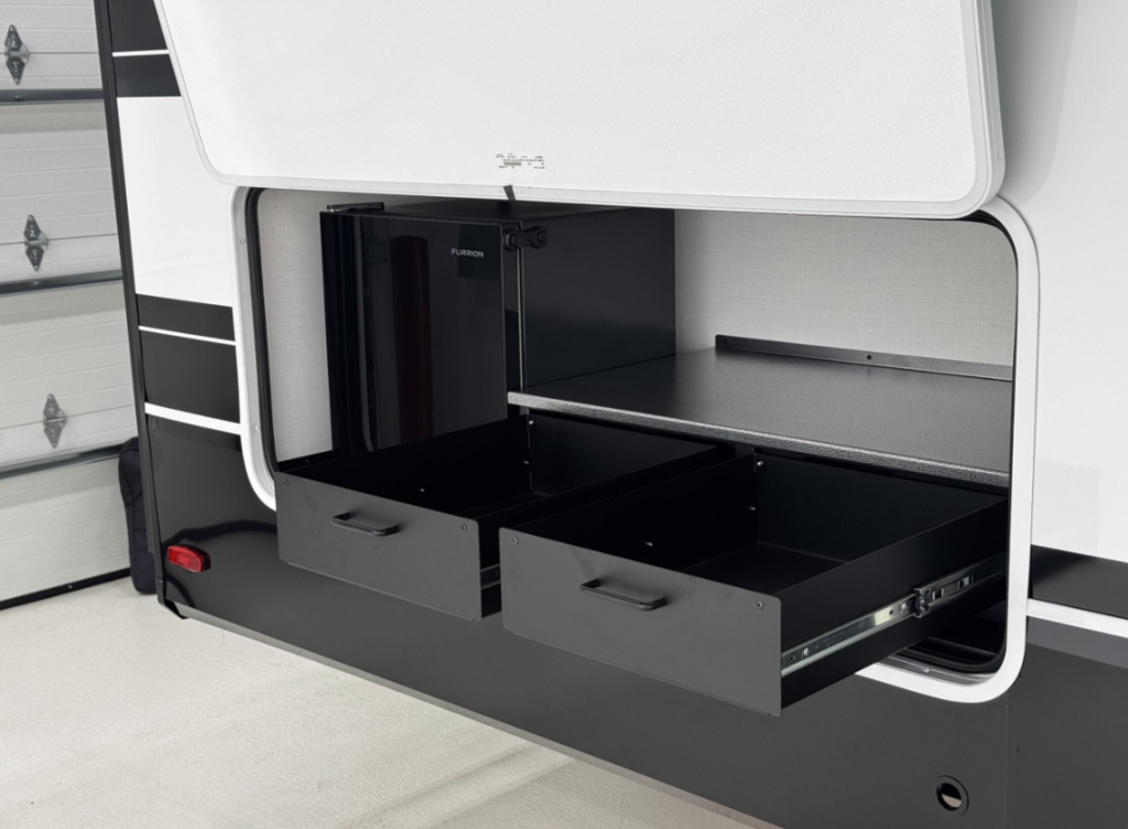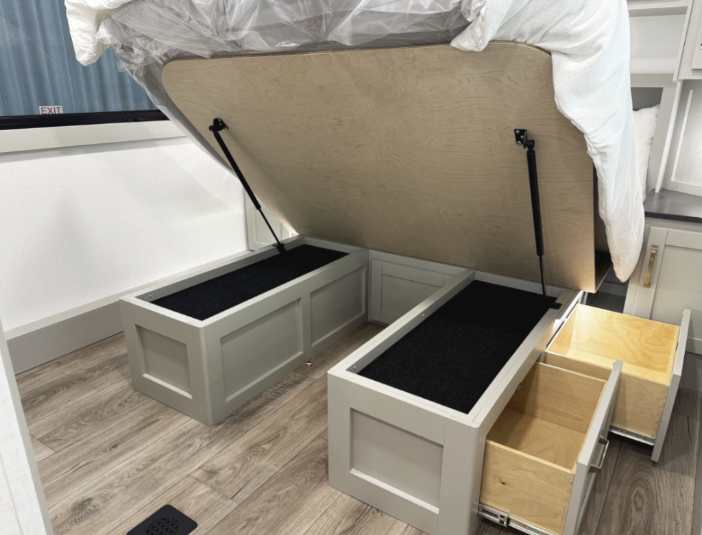 Below the bed, you’ll find exterior-accessible storage – conveniently designed for easy access!