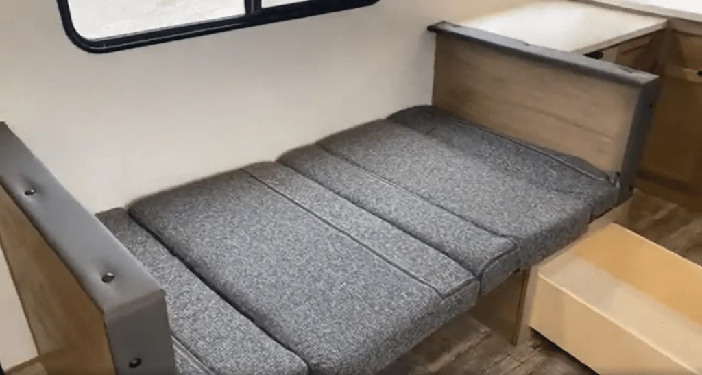 Step inside the Arctic Wolf 23MLE, and you’ll be welcomed by a cozy, well-designed interior. The tri-fold hide-a-bed sofa, standard in this floor plan, provides comfortable seating and a potential extra sleeping space.