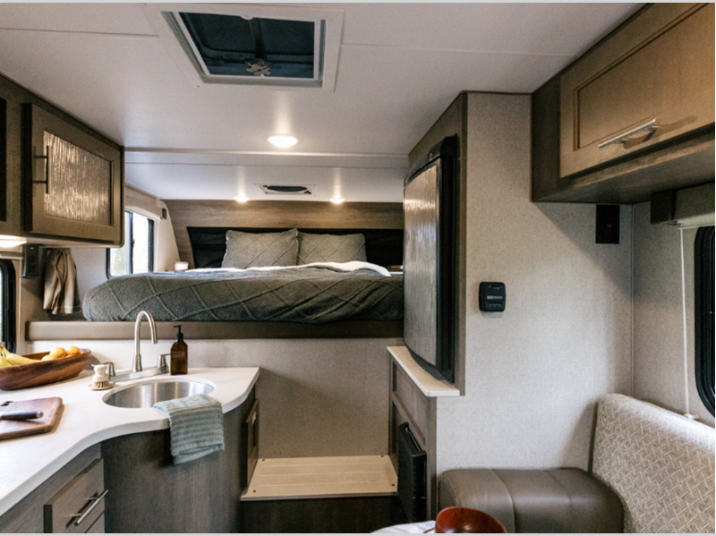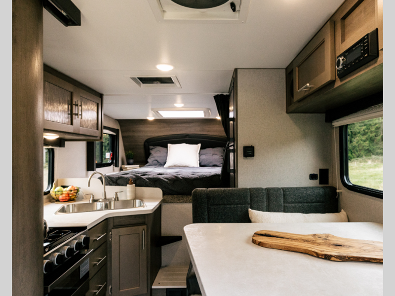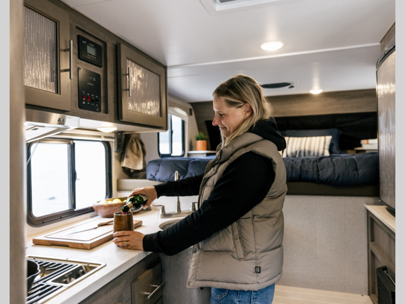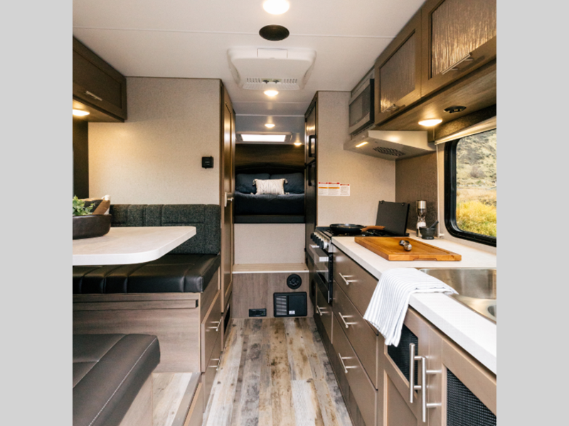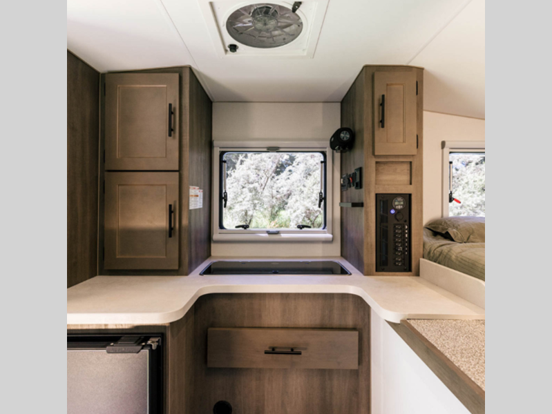 Sleeps 3 Length 17 ft Ext Width 8 ft Ext Height 8 ft 10 in Int Height 6 ft 6 in Interior Color Canvas, Dark Night GVWR 2922 lbs Fresh Water Capacity 42 gals Furnace BTU 20000 btu Available Beds Queen Refrigerator Type Dometic Two Door Stainless Steel Refrigerator/Freezer Refrigerator Size 7 cu ft Cooktop Burners 3 Floor Length 9 ft 5 in Center of Gravity Front 38.5 in Water Heater Capacity 6 gal Water Heater Type DSI Truck Bed Size Short/Long Body Style Hard-Side Shower Type Wet/Bath Shower Electrical Service 30 amp
