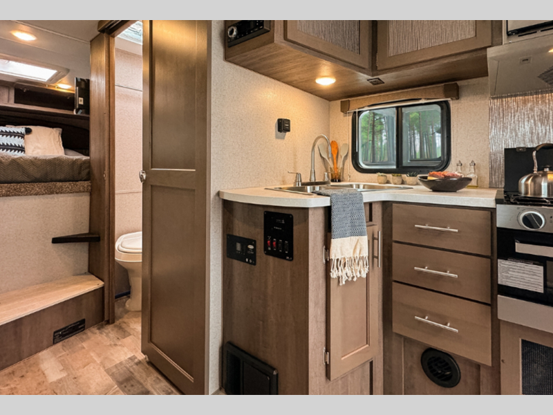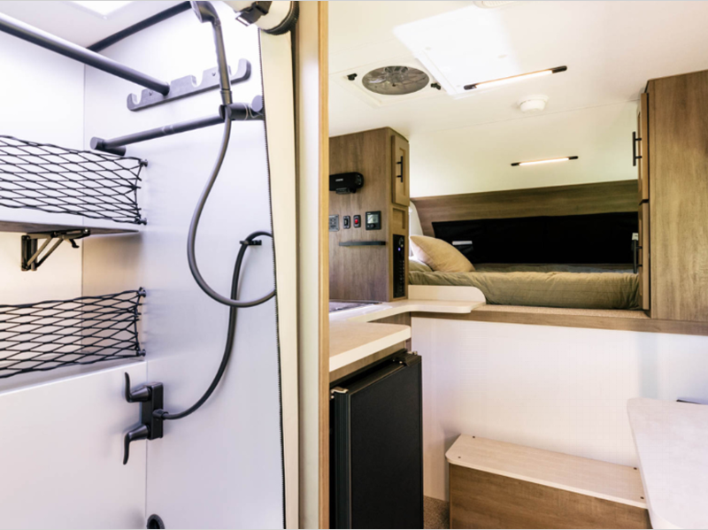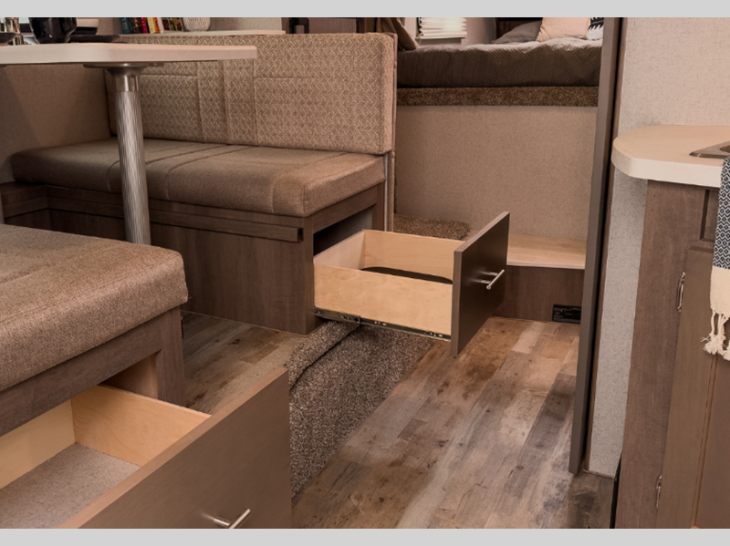 - Wall Cabinets, Drawers, Camper Caddy, Underfloor Storage, and Gear Locker w/ Shelf and Hanging Storage