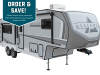 Sleeps 3 Slides 1 Length 27 ft 11 in Ext Width 8 ft 5 in Ext Height 13 ft 2 in Hitch Weight 1200 lbs GVWR 10495 lbs Dry Weight 8270 lbs Fresh Water Capacity 48 gals Grey Water Capacity 106 gals Black Water Capacity 53 gals Available Beds Queen Refrigerator Type 12V Refrigerator Size 10 cu ft Cooktop Burners 3 Shower Size 30" x 36" Number of Awnings 1 AC BTU 13500 btu TV Info LR 50" HDTV Awning Info 16' Axle Count 2 Washer/Dryer Available Yes Shower Type Standard Similar Floorplans