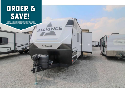 Form and function work together with every one of these Alliance RV Delta travel trailers! They are built with a walk-on roof with a seamless PVC roof covering, Mylar reinforced exterior seals, and a heated and enclosed underbelly to protect your unit. The commercial grade vinyl flooring will be easy to clean, and the oversized atrium windows throughout let in plenty of natural sunlight. With 62 cu. ft. of drop frame pass-through storage, you can bring along all of your essential camping gear plus it has USB charging for more convenience. There are many at home interior conveniences including a Bluetooth speaker, USB charging throughout, and even a pull-out kitchen trash can. Come find your favorite model today!