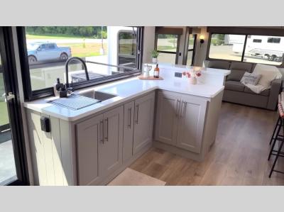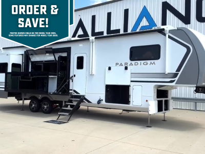 The Paradigm fifth wheels by Alliance RV are functional, high-quality, and luxurious for an unforgettable camping experience. There are three A/C units and a 40K BTU furnace to keep you comfortable year around, and you'll appreciate additional convenient amenities, like the all-in-one enclosed/heated utility center and the color coded and numbered wiring. A Helux Series coil spring pin box comes standard for hassle-free towing, along with Curt 8,000 lb. axles. You'll love the kitchen with its LG solid surface countertops and Lusso range, plus there is LED motion lighting in the pantry and a Maxx fan with a rain sensor to keep everything fresh when making dinner. Each model also includes an HD Smart TV in the living room and bedroom. And of course there are a variety of options you can choose from to further customize your fifth wheel; dual pane windows, Super Solar Plus, slide out awning toppers, and generator prep or a generator to name a few!