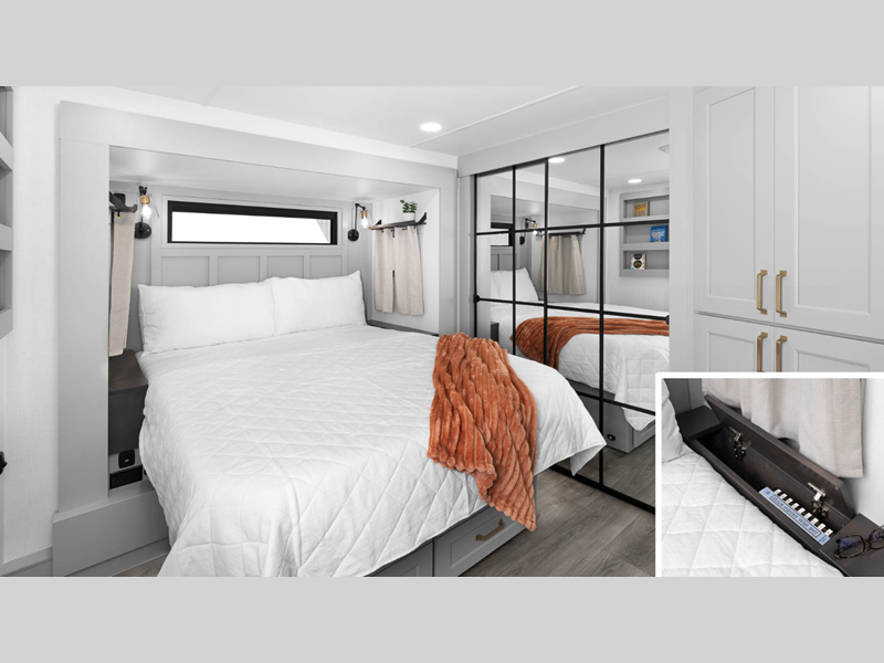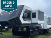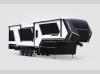 Unmatched luxury, an automotive exterior, tons of storage space, and intelligent features; it has to be a Model G toy hauler fifth wheel by Brinkley!