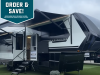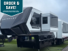 Unmatched luxury, an automotive exterior, tons of storage space, and intelligent features; it has to be a Model G toy hauler fifth wheel by Brinkley!