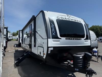 Each of these Coachmen RV Apex Ultra-Lite travel trailers is light, creative, environmentally friendly, and TRA certified green! They are constructed with high-quality materials such as Azdel walls, an aluma-cage frame, and an enclosed underbelly with forced air heat, allowing you to travel even in the colder months while keeping your unit safe. Your vehicle will also be protected by the front stone guard, ground effects metal skirting, and ABS fender skirts. The interiors are equipped with Congoleum DiamondFlor flooring for easy cleaning, a USB charging station to keep your electronics charged, and a digital TV antenna with cable hook-ups and WiFi functionality so you can stay connected wherever you go!
