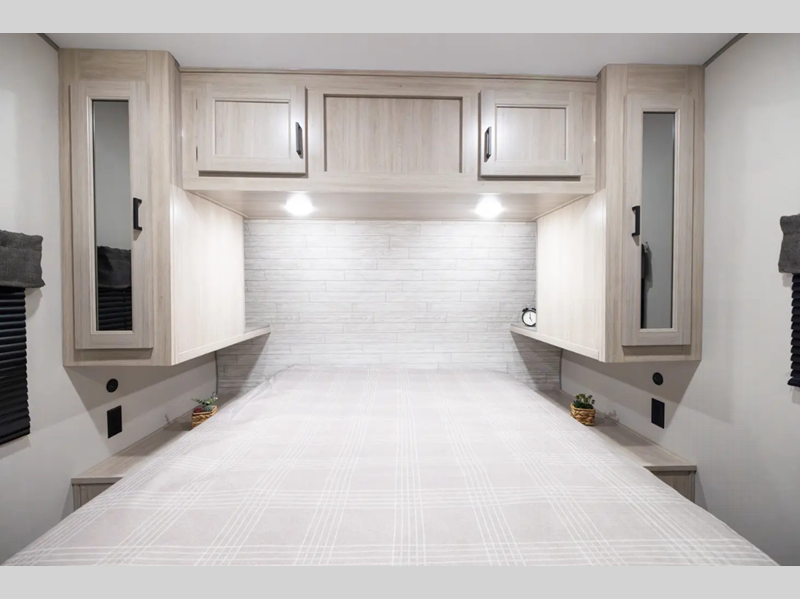 Sleeps 4 Length 29 ft 10 in Ext Width 8 ft Ext Height 10 ft 7 in Int Height 6 ft 9 in Hitch Weight 957 lbs GVWR 7900 lbs Dry Weight 5486 lbs Cargo Capacity 2414 lbs Fresh Water Capacity 44 gals Grey Water Capacity 40 gals Black Water Capacity 30 gals Furnace BTU 30000 btu Available Beds Queen Refrigerator Type GE Stainless 12V Refrigerator Size 10.7 cu ft Cooktop Burners 3 Shower Size 34" x 34" Number of Awnings 1 LP Tank Capacity 20 lbs Water Heater Type Tankless AC BTU 13500 btu Awning Info 15' Electric with Multi-Color Lights Axle Count 2 Number of LP Tanks 2 Shower Type Radius Electrical Service 30 amp Similar Floorplans