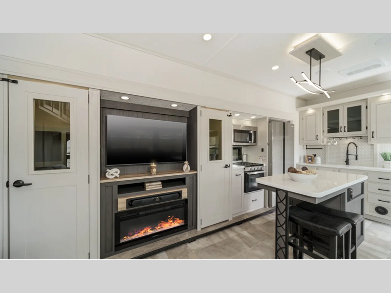The Tri-Tex powder coated frame technology is up to 5X more weather resistant, and the Road Armor suspension by Trail Air will make towing easier than ever. There is also a Solar Source+ solar package that will provide you with off-grid capabilities! There are many new features that are sure to catch your eye, along with new decor options, an upgraded Carbon and Walnut entertainment center, an upgraded heat pump on all factory installed GE A/Cs and more!