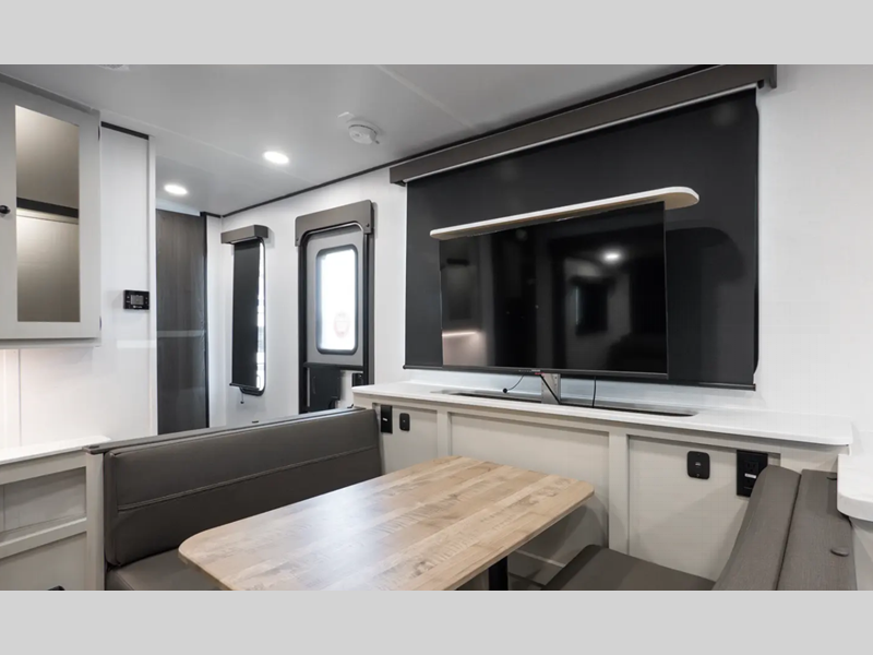 You'll find full bath and kitchen amenities in each model, along with comfortable seating and sleeping spaces. The Azdel composite panels provide durable construction and the heated and enclosed underbelly provides added protection against the elements. There is also convenient storage throughout for your valuables, camp gear, food, and more.