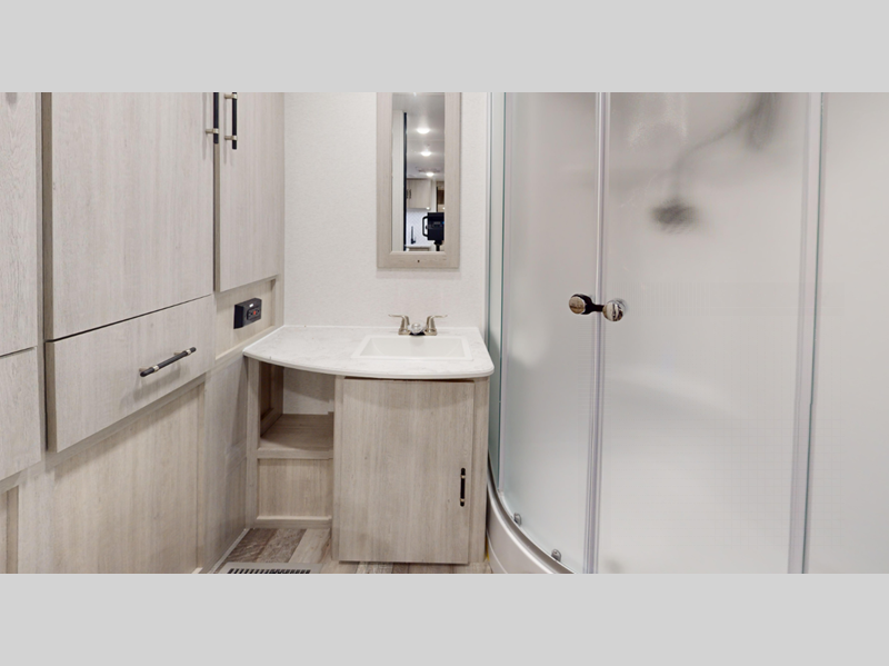 Sleeps 3 Slides 1 Length 30 ft 10 in Ext Width 8 ft Ext Height 11 ft Interior Color Breezy Beige, Granite Gray Hitch Weight 610 lbs Dry Weight 5670 lbs Cargo Capacity 1930 lbs Fresh Water Capacity 44 gals Grey Water Capacity 78 gals Black Water Capacity 28 gals Available Beds Queen Refrigerator Size 10 cu ft Shower Size 34" Number of Awnings 1 Water Heater Type On Demand AC BTU 15000 btu Awning Info Power Axle Count 2 Shower Type Radius Similar Floorplans