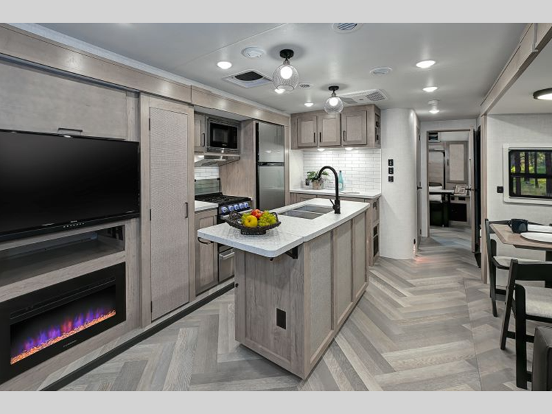 Each model includes key features that will make the camping lifestyle easier than ever, such as a best-in-class 82" ceiling height, carpetless flooring, solid surface countertops in the kitchen and bath, plus an EmberLink "Smart RV" system that controls slide rooms, awnings, and lighting. The mandatory Off-Grid Solar Package will help keep your adventures powered up, and the auto-leveling and stabilization system will provide hassle-free set up!