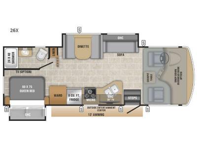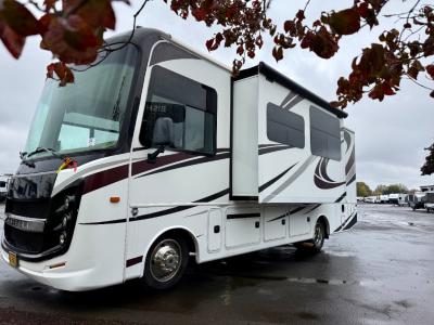 The cockpit offers you a Sony infotainment center with Apple CarPlay and Android Auto, backup and sideview cameras, a 120" panoramic windshield, and a six-way power passenger seat. You will feel right at home with hardwood cabinet doors, drawers and fascia with LED accent lighting, along with blackout roller shades, large wardrobes, and decorative kitchen backsplash!