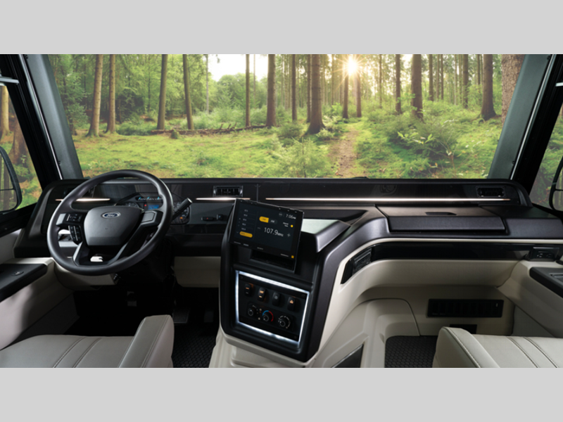 - E-Z Drive™ Elite; 15,000 BTU A/C unit with heat pump and second 13,500 BTU A/C unit; Exterior entertainment center; Electric patio awning with LED lights; Slideout cover awnings; Onan® 5,500W generator; 1,200W inverter; 50-amp electrical service; 10 gal. gas/electric water heater; Sony® infotainment center; Backup and side-view cameras; Removable driver/passenger cockpit table; LED-lit solid-surface countertops, LED HD Smart TV in living area; Integrated day/night cassette shades