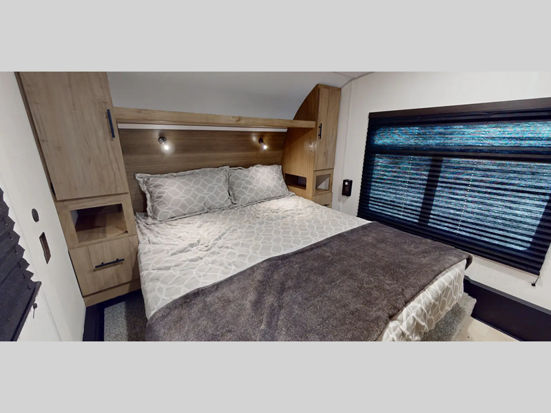 Each Black Label trailer is built with fiberglass gel coat sided walls, frameless windows, and thermofoil insulation for added protection. Inside you will enjoy features such as upgraded solid surface countertops, upgraded reading lights, and designer cushion fabric!