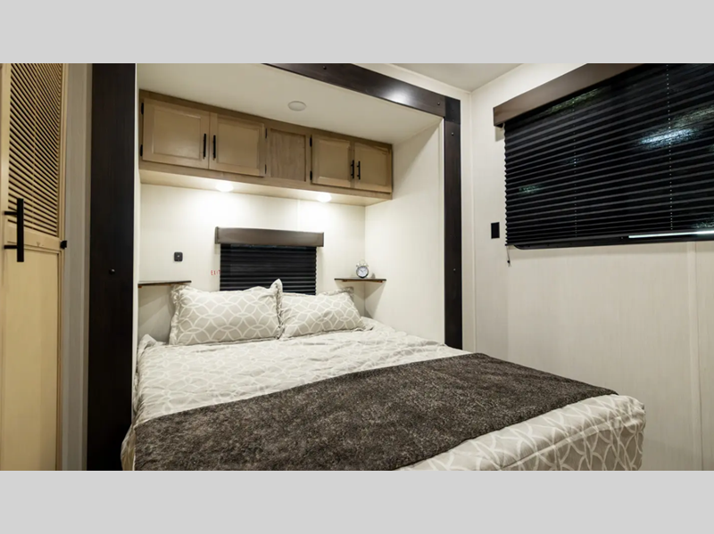 You will always find a comfortable place to relax with friends and family, cook with the full kitchen amenities, and clean up daily in the bathroom. There are also cozy sleeping spaces, plenty of storage options, and durable construction materials so you can enjoy your trailer for years to come!