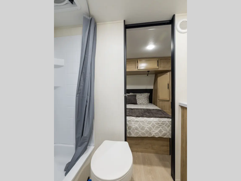 Sleeps 3 Length 21 ft 10 in Ext Width 7 ft 6 in Ext Height 10 ft 6 in Hitch Weight 404 lbs GVWR 5504 lbs Dry Weight 3861 lbs Cargo Capacity 1643 lbs Fresh Water Capacity 26 gals Grey Water Capacity 28 gals Black Water Capacity 28 gals Tire Size 14" Furnace BTU 20000 btu Available Beds Queen Refrigerator Type 12V High Efficiency Residential w/Travel Lock Number of Awnings 1 Water Heater Type Tankless AC BTU 13500 btu Awning Info 12' Power with LED Light Strip Axle Count 1 Shower Type Tub/Shower Combo Similar Floorplans