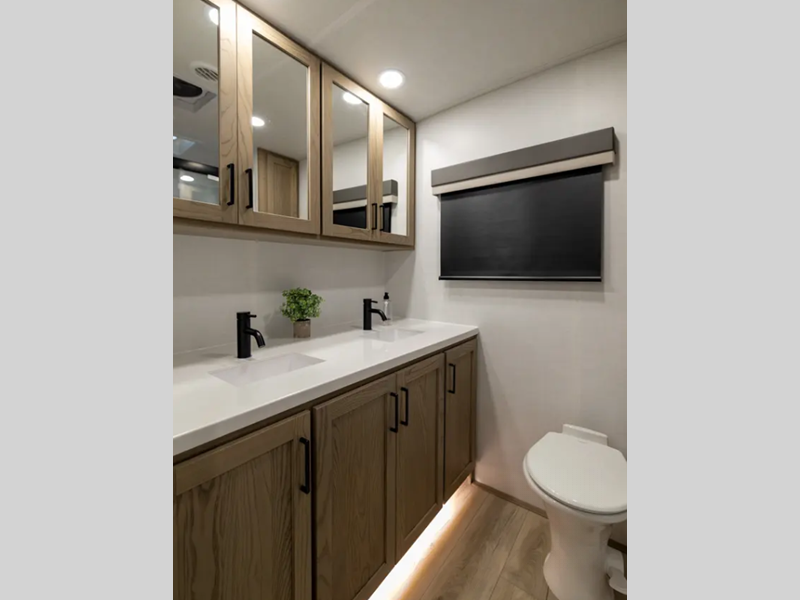 Sleeps 2 Slides 2 Length 29 ft 11 in Ext Width 8 ft Ext Height 11 ft 7 in Hitch Weight 1010 lbs Dry Weight 7649 lbs Cargo Capacity 2161 lbs Fresh Water Capacity 54 gals Grey Water Capacity 78 gals Black Water Capacity 39 gals Furnace BTU 35000 btu Available Beds King Refrigerator Type 12V Cooktop Burners 3 Number of Awnings 1 LP Tank Capacity 30 lbs Water Heater Capacity 6 gal Water Heater Type Quick Recovery Gas/Electric TV Info LR Smart TV Awning Info 22' Power w/Adjustable Rain Dump & LED Lights Axle Count 2 Number of LP Tanks 2 Shower Type Shower w/Seat Electrical Service 50 amp Similar Floorplans