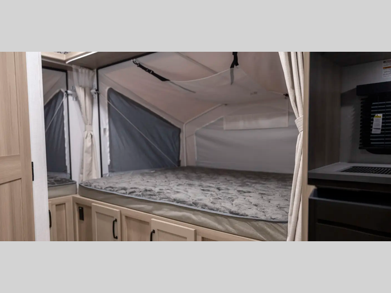 Sleeps 5 Length 18 ft 9 in Ext Width 8 ft Ext Height 10 ft 4 in Hitch Weight 464 lbs Dry Weight 3858 lbs Cargo Capacity 1606 lbs Fresh Water Capacity 54 gals Grey Water Capacity 29 gals Black Water Capacity 29 gals Furnace BTU 35000 btu Available Beds Two Queen Tent End Beds Refrigerator Type 12V Cooktop Burners 3 Number of Awnings 1 Water Heater Type Gas/Electric Quick Recovery AC BTU 15000 btu TV Info LR 12V Smart Entertainment TV Awning Info 12' Power w/Adjustable Rain Dump & LED Lighting Axle Count 1 Shower Type Standard