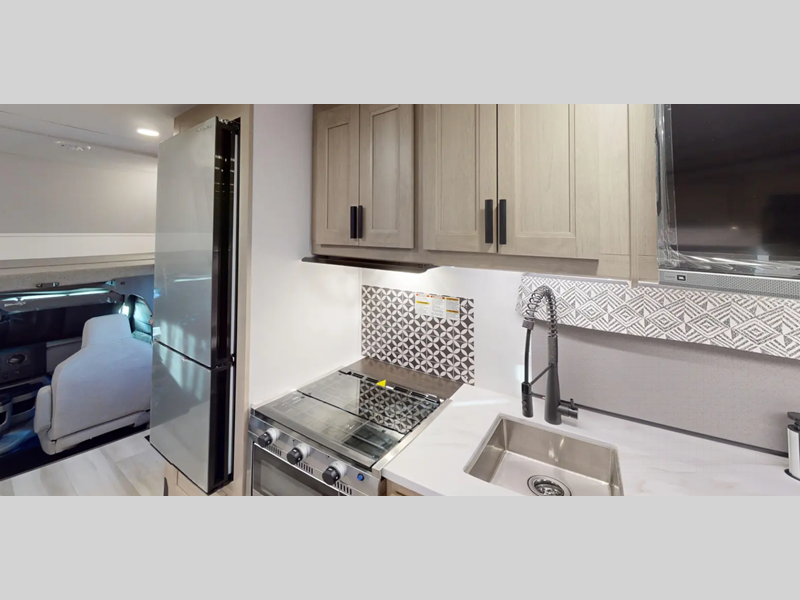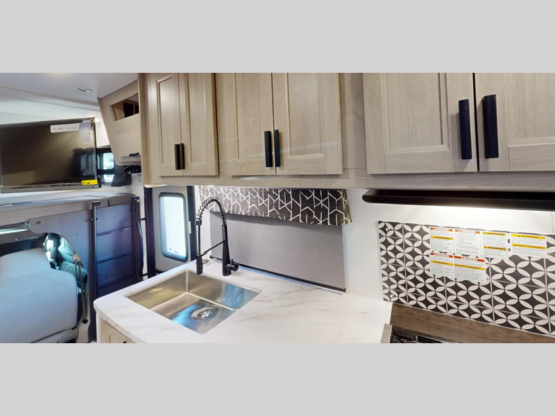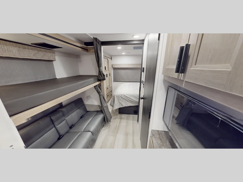 Durable construction includes SuperLite composite substrate, block foam insulation, a crowned, laminated fiberglass roof, and a one-piece seamless fiberglass cap. Some top features include a backup camera/side view cameras with a 3-way monitor, blackout roller shades, soft touch self-closing drawer guides, and much more!