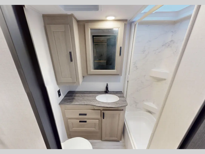 Sleeps 5 Slides 1 Length 25 ft Ext Width 8 ft 5 in Ext Height 11 ft 3 in Hitch Weight 5000 lbs GVWR 12300 lbs Fresh Water Capacity 44 gals Grey Water Capacity 39 gals Black Water Capacity 39 gals Furnace BTU 30000 btu Generator 4.5KW Gas Fuel Type Gas Chassis Chevy 3500 Fuel Capacity 57 gals Wheelbase 159 in Number Of Bunks 1 Available Beds Queen Refrigerator Type 12V Refrigerator Size 10.7 cu ft Convection Cooking Yes Cooktop Burners 3 Shower Size 24" x 32" Number of Awnings 1 Axle Weight Front 4600 lbs Axle Weight Rear 9600 lbs LP Tank Capacity 41 lbs Water Heater Capacity 6 gal Water Heater Type DSI Gas/Electric AC BTU 13500 btu TV Info LR 12V LED Awning Info 15' 6" Power w/ LED Light Strip Gross Combined Weight 20000 lbs Shower Type Standard Electrical Service 30 amp Similar Floorplans