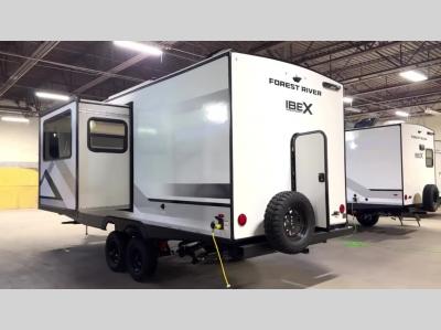The Forest River IBEX travel trailers are extended season ready, and adventure approved! They are built with a sealed underbelly with forced heat and radiant foil barrier, along with an aluminum framed floor and 12V tank heaters. There are also all-terrain tires with TPMS, a 200-watt solar panel, a power tongue jack, and roof ladder prep. Inside, you'll love the Surf(X) seamless countertops and the large kitchen sink with a cup washer, plus there is Bluetooth audio with marine grade speakers so you can listen to your favorite tunes. The optional Black Canyon Beast Mode Package is available with an independent suspension, 400 watts of solar, a fresh water filter, and a Maxxair roof vent cover.