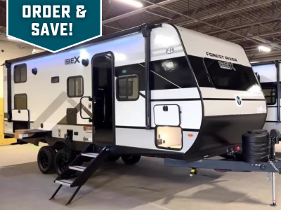 The Forest River IBEX travel trailers are extended season ready, and adventure approved! They are built with a fully walkable PVC roof, a welded aluminum structure, and laminated walls and slide outs with Azdel composite panels. There are also all-terrain tires with TPMS, a hot and cold exterior spray port, and large holding tanks for added convenience when you're set up off-grid. The USB-C ports inside and out will help you keep your electronics charged, and the premium window treatments will make your trailer feel more like home. The optional Black Canyon Beast Mode Package is available with an independent suspension, a 400-watt solar package, a fresh water filter, and a Maxxair roof vent cover.