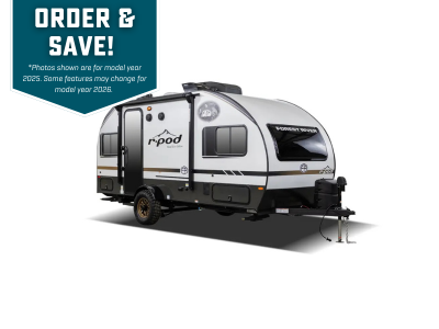 With any R-Pod travel trailer by Forest River, you will enjoy affordable luxury at the lowest tow weight in its class! There is a sealed underbelly with forced heat, a curved dual-pane acrylic front window with a bug screen and night shade, plus a large roof mounted solar panel for off-grid capabilities. The 15K A/C unit will keep you comfortable during the summer camping months, and the tankless water heater will provide endless hot showers after hiking, biking, swimming and more! Each model also includes a black glass friction hinge entrance door, roof ladder prep, exterior motion lighting, plus a hot and cold exterior spray port to wash off sand from the beach. Inside, you'll enjoy seamless Surf-X kitchen countertops, blackout roller shades, and a central vacuum system for hassle-free cleaning!