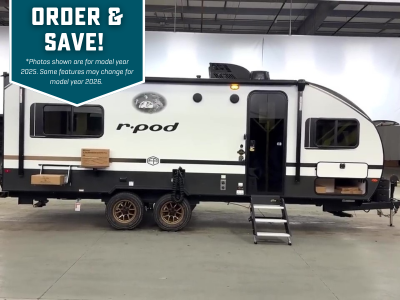 With any R-Pod travel trailer by Forest River, you will enjoy affordable luxury at the lowest tow weight in its class! There is a sealed underbelly with forced heat, a curved dual-pane acrylic front window with a bug screen and night shade, plus a large roof mounted solar panel for off-grid capabilities. The 15K A/C unit will keep you comfortable during the summer camping months, and the tankless water heater will provide endless hot showers after hiking, biking, swimming and more! Each model also includes a black glass friction hinge entrance door, roof ladder prep, exterior motion lighting, plus a hot and cold exterior spray port to wash off sand from the beach. Inside, you'll enjoy seamless Surf-X kitchen countertops, blackout roller shades, and a central vacuum system for hassle-free cleaning!