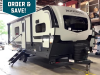Each travel trailer will have you feeling right at home with its hidden hinge cabinet doors, plus solid surface kitchen countertops and roller shades for added privacy. The Showermiser water saving system is sure to come in handy while camping over the weekend, and the TV with a stereo ensures you'll never go bored. Towing is made hassle-free thanks to the power tongue jack, along with Dexter Torflex axles and Goodyear Endurance tires.