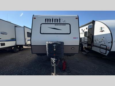 Each Rockwood Mini Lite travel trailer by Forest River is constructed with a fully laminated one-piece walkable roof, sleek frameless windows, and a six-sided full aluminum frame for strength and durability. The 12V thermostatically controlled heated tanks, plus radiant foil in the underbelly will allow you to camp well into the colder months, and the 200W roof solar panel will be perfect for a little off-gridding. Each model includes solid surface kitchen countertops, hidden hinge cabinet doors, roller shades, plus many more interior features. Having an AIR 360+ omnidirectional antenna with WiFi prep on board gives you the option to get some work done if it's needed, and the power tongue jack provides hassle-free set up, so you can enjoy more time relaxing!