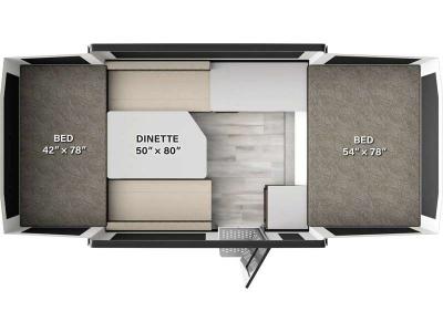 The 12" radial tires and Dexter sprung axles make towing easier than ever, plus there are two rear stabilizer jacks with sand pads for added stability when you're set up at the campground. Each model also includes solar prep on the frame that will provide off-grid capabilities! Inside, you'll love the Andover Sable Wood interior and wood look flooring, along with the quilted top bed mattress, privacy curtains, and LED lights.