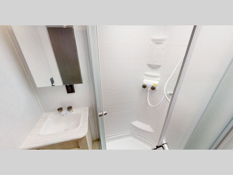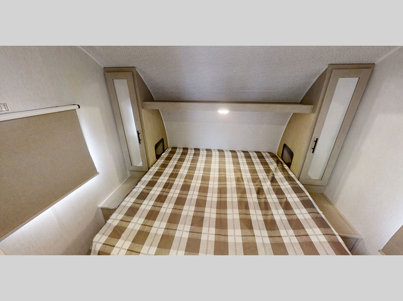 There are stylish window shades inside, along with TFL cabinet doors, upgraded backsplash, plus elegant curtain rods and curtains to make you feel more at home. You will also appreciate some of the best-in-class features such as, an enclosed Accessibelly for added protection, exterior accent lighting, a powder coated I-beam frame, and seamless holding tanks.