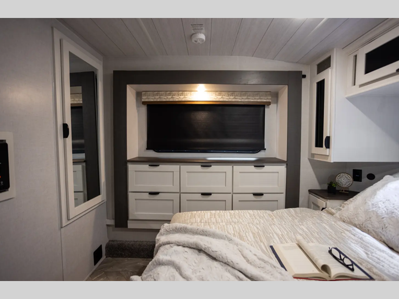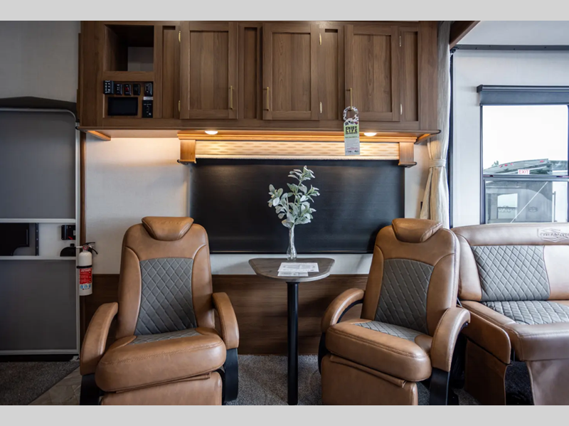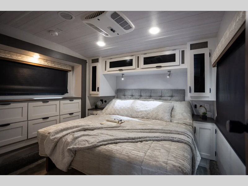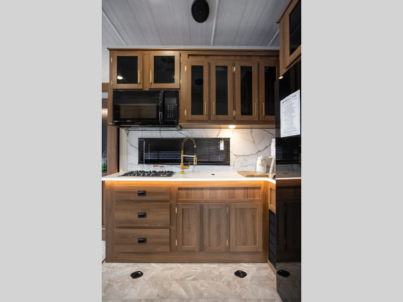 Sleeps 6 Slides 2 Fresh Water Capacity 150 gals Furnace BTU 35000 btu Fuel Capacity 40 gals Number Of Bunks 1 Available Beds King Refrigerator Type 12V Refrigerator Size 15.7 cu ft Convection Cooking Yes Number of Awnings 1 Garage Size 15 ft 7 in LP Tank Capacity 30 lbs Water Heater Type Tankless AC BTU 30000 btu Awning Info With LED Lights Axle Count 2 Number of LP Tanks 2 Shower Type Radius Solar Wattage 200 watts Similar Floorplans
