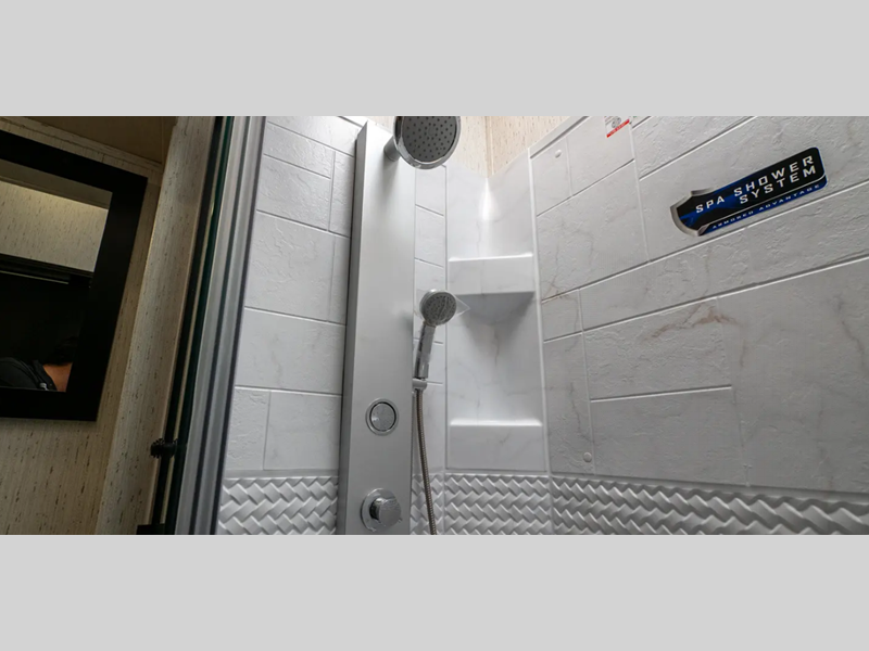 Sleeps 6 Slides 2 Length 34 ft Ext Width 8 ft 6 in Ext Height 12 ft 10 in Hitch Weight 1465 lbs GVWR 13465 lbs Dry Weight 8704 lbs Cargo Capacity 4761 lbs Fresh Water Capacity 102 gals Grey Water Capacity 50 gals Black Water Capacity 50 gals Tire Size 16" Furnace BTU 35000 btu Fuel Capacity 30 gals Number Of Bunks 1 Available Beds King Refrigerator Type 12V Black Glass Residential Style Refrigerator Size 10.7 cu ft Cooktop Burners 3 Number of Awnings 1 Axle Weight 6000 lbs Water Heater Type On Demand Tankless AC BTU 15000 btu TV Info LR LED Flatscreen Awning Info Power w/LED Lights Axle Count 2 Shower Type Standard Electrical Service 50 amp Similar Floorplans