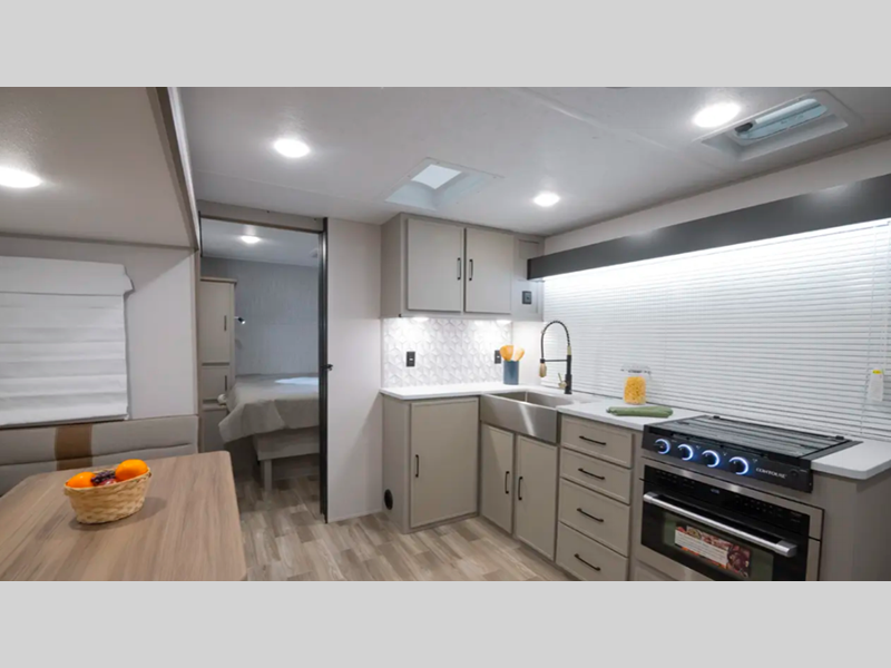Sleeps 7 Length 22 ft 5 in Ext Width 7 ft 6 in Ext Height 10 ft 8 in Hitch Weight 538 lbs Dry Weight 3817 lbs Cargo Capacity 1121 lbs Fresh Water Capacity 39 gals Grey Water Capacity 27 gals Black Water Capacity 27 gals Number Of Bunks 2 Available Beds Murphy Refrigerator Type Stainless Steel 12 Volt Quick Cool Refrigerator Size 10 cu ft Cooktop Burners 2 Shower Size 36" x 24" Number of Awnings 1 Water Heater Type On Demand Tankless AC BTU 13500 btu Awning Info 14' One Touch Electric with LED Night Light Axle Count 1 Shower Type Standard Similar Floorplans