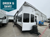 Sleeps 8 Slides 2 Length 44 ft 11 in Ext Width 8 ft 5 in Ext Height 13 ft 4 in Hitch Weight 1485 lbs Dry Weight 14404 lbs Cargo Capacity 2400 lbs Fresh Water Capacity 40 gals Grey Water Capacity 80 gals Black Water Capacity 80 gals Available Beds King with Versa Tilt, Versa Queen, Versa Queen Mattress Cooktop Burners 4 Number of Awnings 1 Water Heater Type On Demand Tankless TV Info LR Televator Awning Info with 4K Blade Lighting Axle Count 2 Washer/Dryer Available Yes Shower Type Walk-In Shower Similar Floorplans