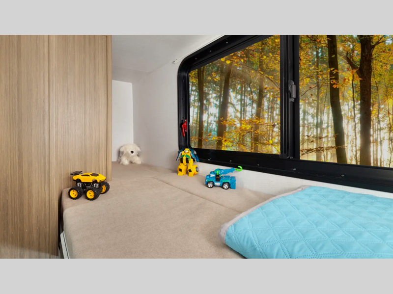 Sleeps 6 Slides 1 Length 29 ft 11 in Ext Width 8 ft Ext Height 10 ft 8 in Hitch Weight 781 lbs Dry Weight 6205 lbs Cargo Capacity 2376 lbs Fresh Water Capacity 61 gals Grey Water Capacity 64 gals Black Water Capacity 32 gals Number Of Bunks 2 Available Beds Custom King with Versa-Tilt Refrigerator Type Oversized Number of Awnings 1 Water Heater Type Tankless AC BTU 15000 btu Awning Info 18' with 4K Blade Lighting Axle Count 2 Shower Type Radius Electrical Service 50 amp Similar Floorplans
