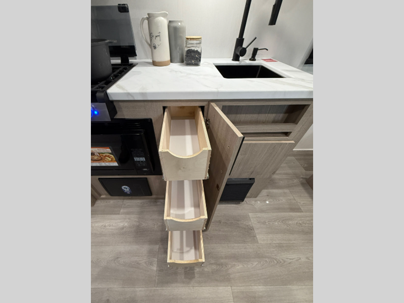 Sleeps 4 Slides 1 Length 21 ft 11 in Ext Width 8 ft Ext Height 10 ft 11 in Int Height 6 ft 6 in Hitch Weight 466 lbs GVWR 5495 lbs Dry Weight 4064 lbs Fresh Water Capacity 37 gals Grey Water Capacity 45 gals Black Water Capacity 37 gals Tire Size ST225/75R15LRE Furnace BTU 20000 btu Number Of Bunks 2 Available Beds Murphy Refrigerator Type 12V Refrigerator Size 6.2 cu ft Convection Cooking Yes Cooktop Burners 2 Number of Awnings 1 LP Tank Capacity 20 lbs Water Heater Type On Demand Tankless AC BTU 13500 btu TV Info LR High Def TV Awning Info 15' Adjustable Power with LED Lights Axle Count 1 Number of LP Tanks 2 Shower Type Walk-In Shower Electrical Service 30 amp Similar Floorplans