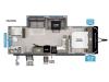 Each of these includes exceptional features, like a 200W roof-mounted solar panel, high-capacity furnace, residential cabinetry, spare tire & carrier, and a universal docking station. Additionally, you'll have accommodating features scattered all throughout the trailer with the upgraded residential furniture in the interior, the solid surface countertops in the kitchen, motion sensor entry LED lighting, and the large panoramic windows in the interior. The aluminum framed fully laminated sidewalls and enclosed underbelly with suspended tanks will hold them up for your adventures on the road!
