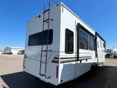 Any Grand Design Influence fifth wheel features five-sided aluminum cage construction with a walk-on roof and a fully enclosed underbelly with heated tanks and storage for all weather camping. For peace of mind, the MORryde CRE3000 Suspension system will provide safe and smooth towing, and the 101" widebody construction offers all the room you need and that is before multiple slides are fully engaged. You will appreciate the Keyed-Alike locks, slam-latch baggage doors with magnetic door catches, exterior security light, and SolidStep entry steps. On the inside, Congoleum flooring, premium roller shades for privacy, a hallway handrail for safety, and nightstands with USB ports to keep all of your electronics fully charged. You will also love the On Demand tankless water heater when showering, plus the added heat and ambiance from an electric fireplace, and so much more!