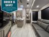 Each model also includes a universal docking center, a fiberglass front cap with paint and LED lighting, a heated and enclosed underbelly for four seasons of traveling, and a dovetail rear end. The Momentum G-Class also comes with large panoramic windows, residential cabinetry, motion-sensor lighting, and stainless steel-accented appliances. The fun will not stop when listening to the exterior speakers, and the awning with LED lighting will create an outdoor living space you are sure to love.