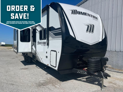 Are you looking for adventure and fun? The Momentum G-Class toy hauler by Grand Design will help you find it! You can explore during any season you choose with the Insulation Package that includes a heated and enclosed underbelly with suspended tanks, a high-capacity furnace, a moisture barrier floor enclosure, and cabinet-mounted heat ducts. Each model includes a high capacity water pump, a dovetail rear end, and 2,500-LB tie-downs anchored into the chassis. Throughout the Momentum G-Class interior, you'll enjoy many comfortable features like large panoramic windows, a shower skylight, USB chargers in the bedroom, and residential cabinetry.