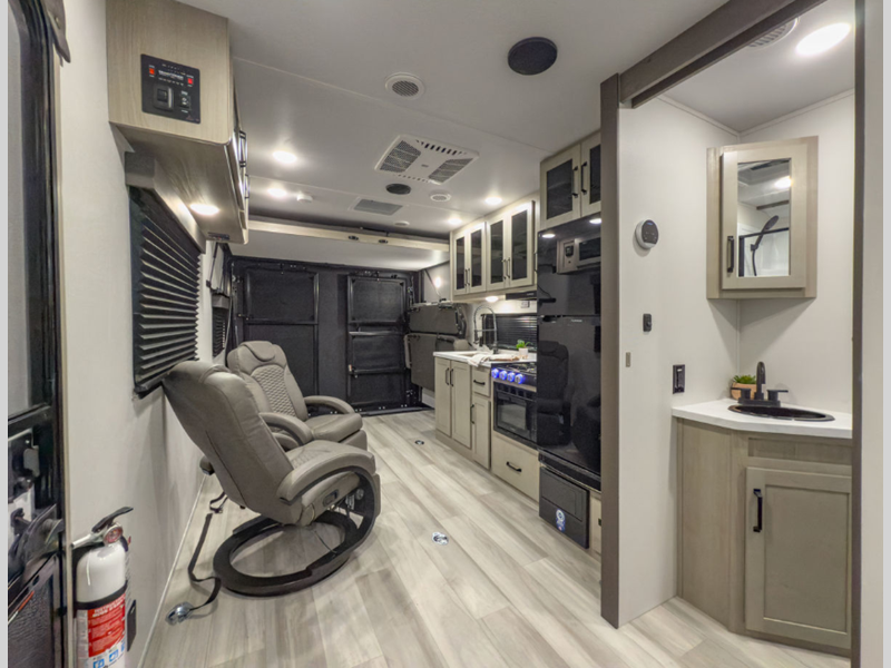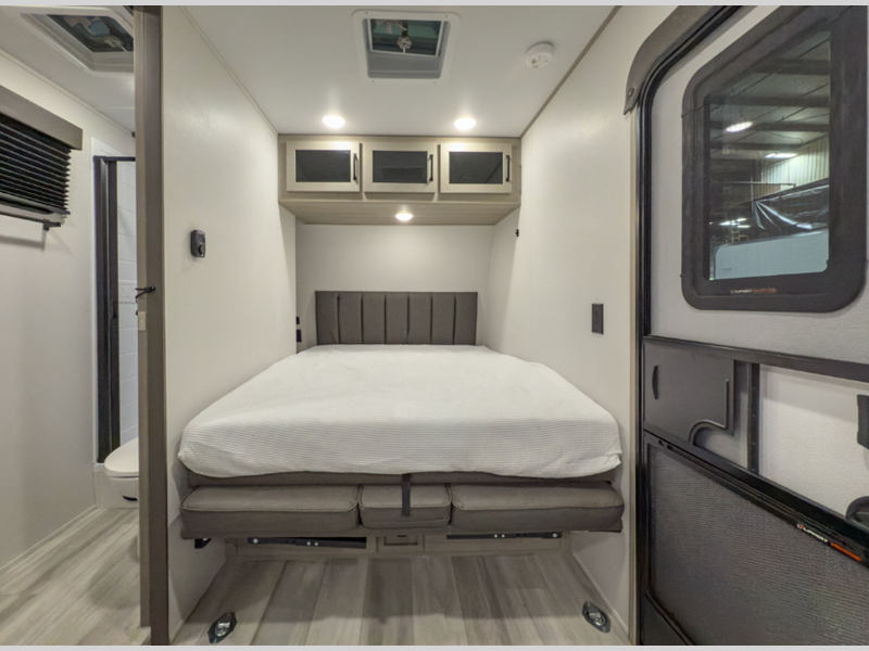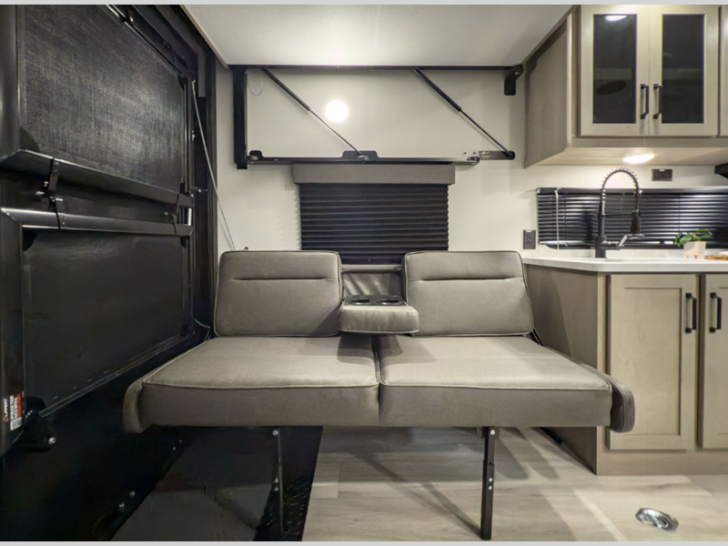Sleeps 2 Length 22 ft 11 in Ext Width 8 ft 4 in Ext Height 12 ft 2 in Int Height 7 ft Hitch Weight 900 lbs GVWR 9950 lbs Dry Weight 5518 lbs Fresh Water Capacity 90 gals Grey Water Capacity 74 gals Black Water Capacity 37 gals Tire Size ST225/75R15LRE Furnace BTU 30000 btu Available Beds Queen Murphy Refrigerator Type 12V Refrigerator Size 8 cu ft Cooktop Burners 3 Shower Size 27" x 36" Number of Awnings 1 Garage Size 11 ft 6 in LP Tank Capacity 20 lbs Water Heater Type Tankless AC BTU 15000 btu Awning Info 13' Power Axle Count 2 Number of LP Tanks 2 Shower Type Walk-In Shower Similar Floorplans
