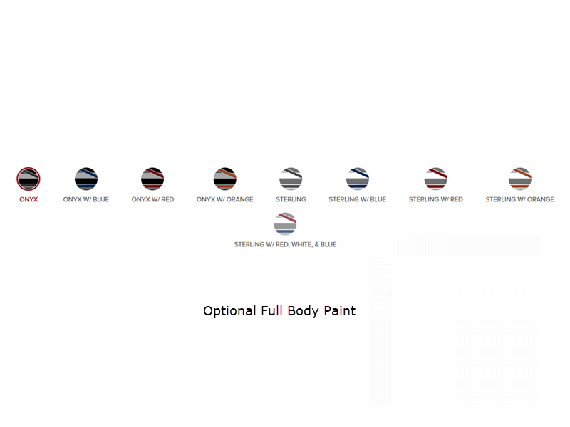 Sleeps 4 Slides 3 Length 44 ft 11 in Ext Width 8 ft 5 in Ext Height 13 ft 6 in Int Height 8 ft 5 in Exterior Color Onyx, Onyx w/; Blue, Red, Orange. Sterling, Sterling w/; Blue, Red, Orange, Red, whit, and Blue Hitch Weight 3600 lbs GVWR 22500 lbs Dry Weight 16800 lbs Fresh Water Capacity 140 gals Grey Water Capacity 104 gals Black Water Capacity 52 gals Tire Size 17.5" Furnace BTU 40000 btu Fuel Capacity 60 gals Available Beds Queen Refrigerator Type 12V Stainless Steel Refrigerator Size 20 cu ft Cooktop Burners 3 Shower Size 48" x 30" Number of Awnings 3 Axle Weight 7000 lbs Garage Size 13 ft 6 in LP Tank Capacity 30 lbs Water Heater Type On Demand AC BTU 30000 btu TV Info LR 49" LED TV, BR LED TV, Garage LED TV Awning Info 10', 12', 16' Power w/ LED Lights Axle Count 2 Washer/Dryer Available Yes Number of LP Tanks 2 Shower Type Shower w/Seat Electrical Service 50 amp Similar Floorplans