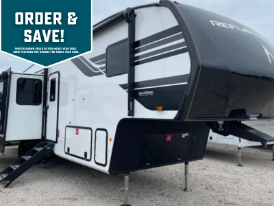 With any Reflection fifth wheel by Grand Design, you will have a solar panel for off-grid camping and a 60 amp charge controller and inverter prep, a Universal All-In-One docking station, unobstructed pass-through storage, and Goodyear Endurance tires. Each is constructed of gel coat exterior sidewalls, residential 5" truss rafters, walk-on roof decking, a fiberglass and radiant foil roof and front cap insulation plus laminated aluminum framed side walls, roof and end walls in slide rooms. Head inside to enjoy residential hardwood cabinet doors, premium Congoleum flooring, a spacious shower with a glass door, and many more comforts!