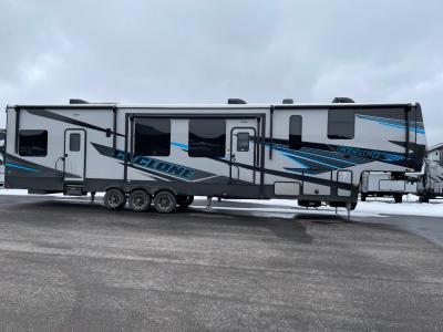 The Cyclone Toy Hauler is the Ultimate Fifth Wheel for anybody looking to get out and experience the outdoors while also bringing along their favorite ATV/UTV. The Cyclone is the ultimate in Luxury Toy Haulers. Each RV comes with Azdel Sidewall Construction, a Grill & Go 3 Burner Exterior Griddle, and a Full Pass Through Front Storage. Come and take advantage of these historic low prices. A sale like this may not happen again.